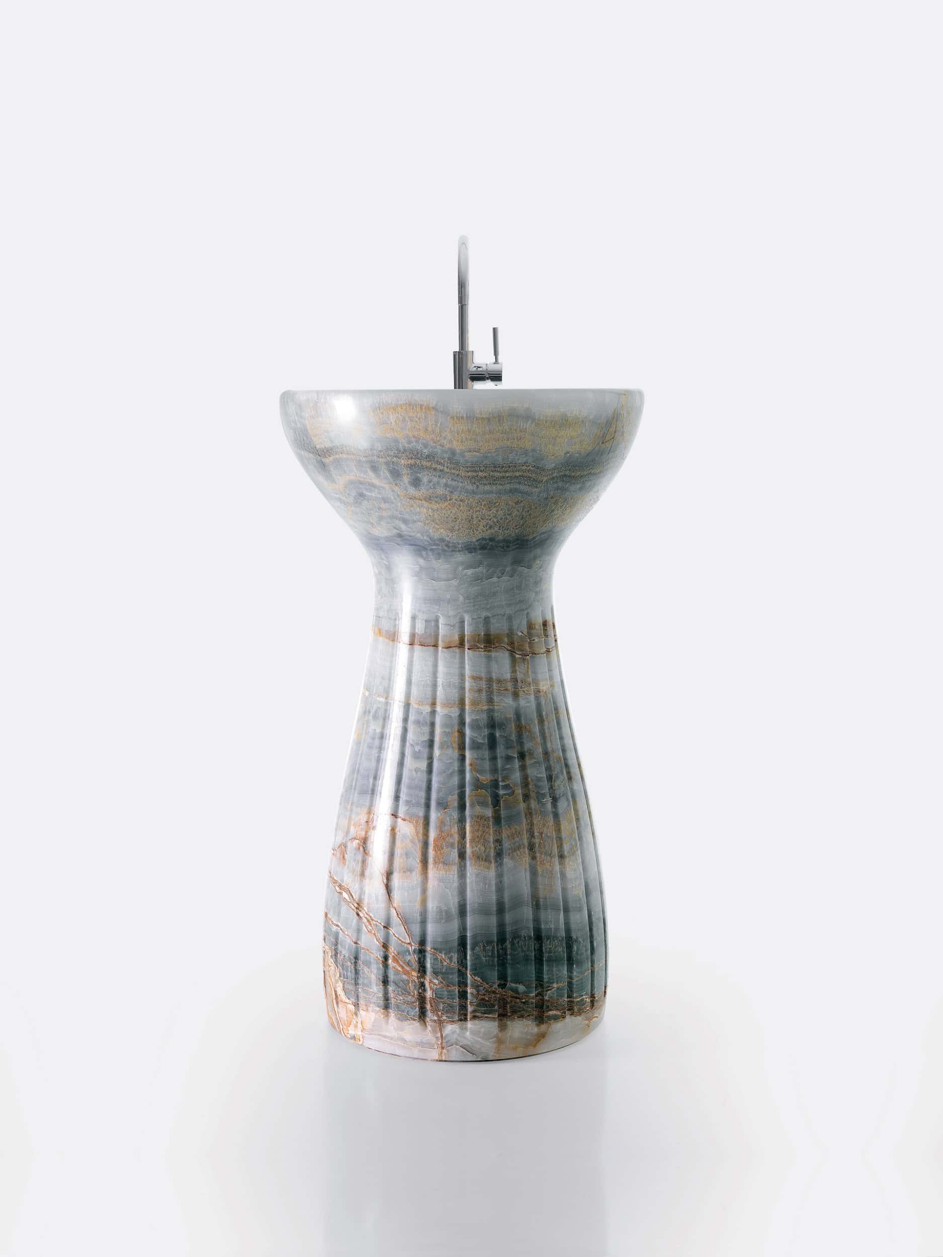 Sculpted from solid natural stone.